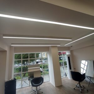 Bir güzellik merkezindeki en büyük zorluk, hem dinlendirici bir ambiyans sunmak hem de teknik işlemler için kusursuz bir görüş alanı sağlamaktır. Bu dengeyi kurmak için katmanlı bir aydınlatma planı oluşturduk. Genel aydınlatma ile mekanın homojen bir ışık seviyesine ulaşmasını sağlarken, görev aydınlatmaları ile uzmanların çalışma alanlarını güçlendirdik.